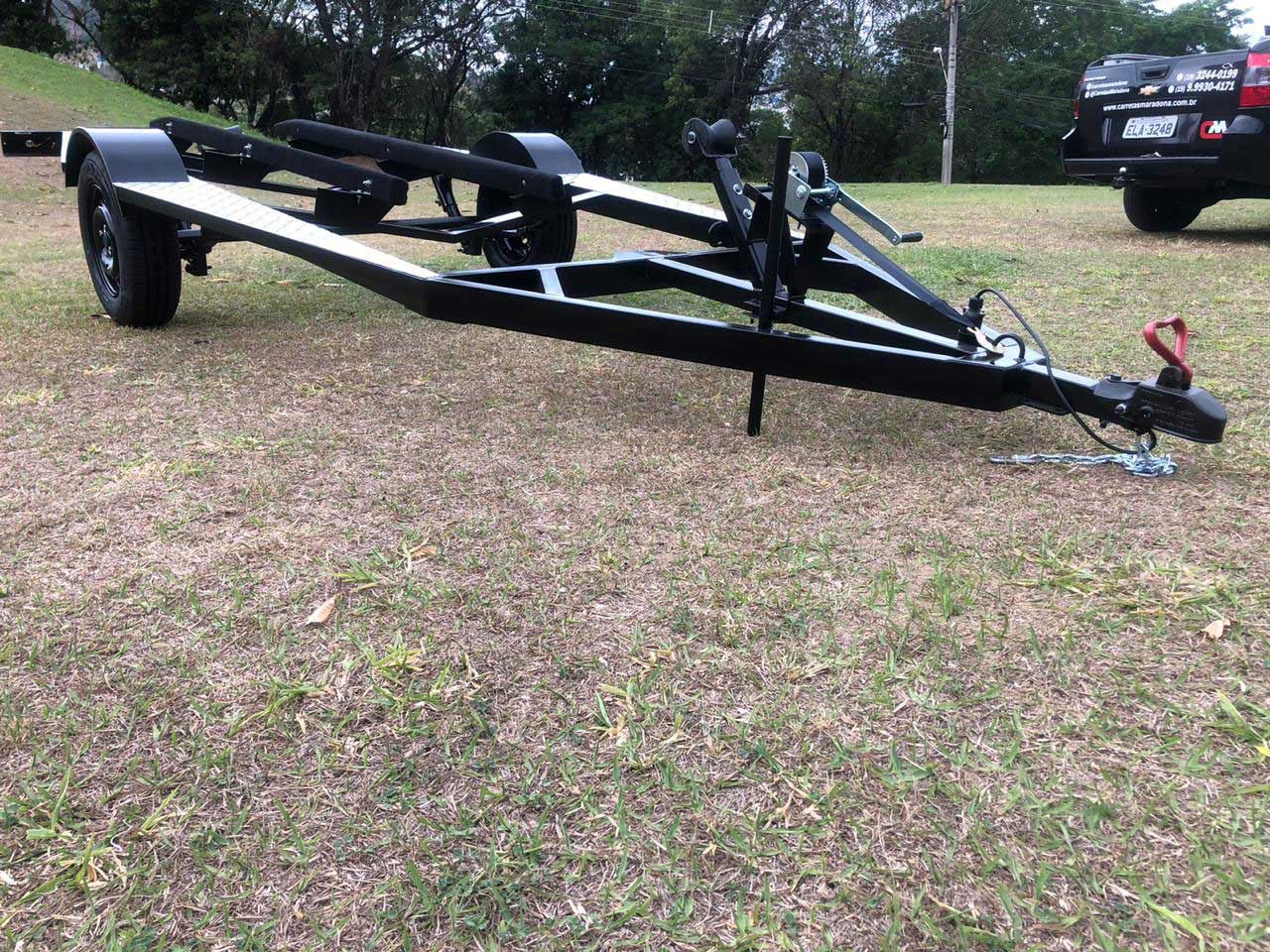 Carretinha resistente para transporte de jet ski, com estrutura em metalon, guincho manual, pisante em alumínio, pneus novos e iluminação em led. Ideal para transporte seguro e prático. Se ajusta para diferentes modelos de jetski